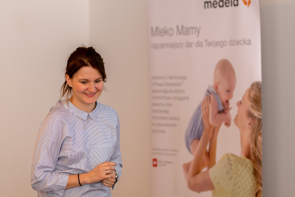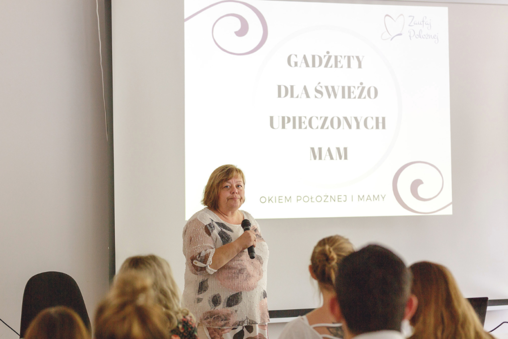Na powyższym zdjęciu, nasza położna Izabela na jednej z pierwszych konferencji dla przyszłych mam. Gdynia.