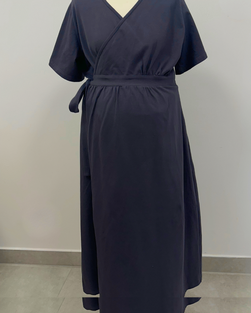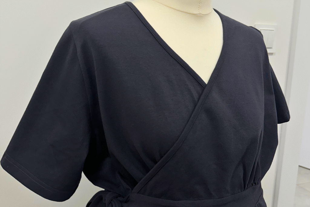Koszula ma regulowany krój, dzięki czemu można ją swobodnie dopasować zarówno do ciążowego brzuszka, jak i do sylwetki po porodzie. Wystarczy lekko ją zebrać lub puścić luźniej – materiał układa się tak, żeby było wygodnie w każdej pozycji: siedząc na piłce, chodząc po korytarzu czy karmiąc maluszka. W ciąży i połogu ciało zmienia się praktycznie z tygodnia na tydzień, dlatego zależało nam, żeby koszula po prostu była elastyczna i dawała się dopasować.