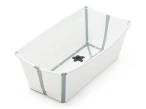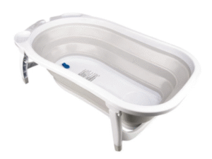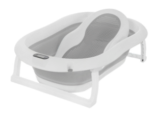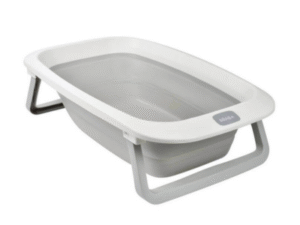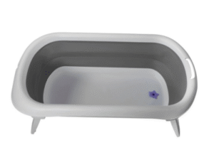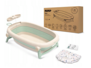 Składana wanienka dostępna w dwóch rozmiarach – standardowym i XL. Zajmuje mało miejsca po złożeniu, dlatego świetnie sprawdzi się w małych mieszkaniach lub w podróży. Położne rekomendują od razu wybór większej wersji, aby posłużyła dłużej.