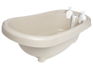 Duża, wygodna wanienka, która wystarczy na wiele miesięcy. Posiada odpływ, praktyczne miejsce na kosmetyki oraz wygodny uchwyt do przenoszenia i na słuchawkę prysznica. Położne podkreślają, że to model bardzo funkcjonalny i „na dłużej” – idealny, jeśli chcesz kupić jedną wanienkę na cały okres niemowlęcy.