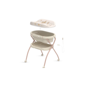 Duża, wygodna wanienka, która wystarczy na wiele miesięcy. W zestawie z przewijakiem, co pozwoli zaoszczędzić miejsce. Posiada odpływ, praktyczne miejsce na kosmetyki oraz wygodny uchwyt do przenoszenia i na słuchawkę prysznica. Położne podkreślają, że to model bardzo funkcjonalny i „na dłużej” – idealny, jeśli chcesz kupić jedną rzecz która spełni dwie funkcje. W zestawie ze stelażem, dzięki czemu nie musisz się schylać. Konstrukcja posiada blokowane kółka dzięki czemu bez problemu i bez używania siły Twoja stacja pielęgnacyjna może być mobilna.